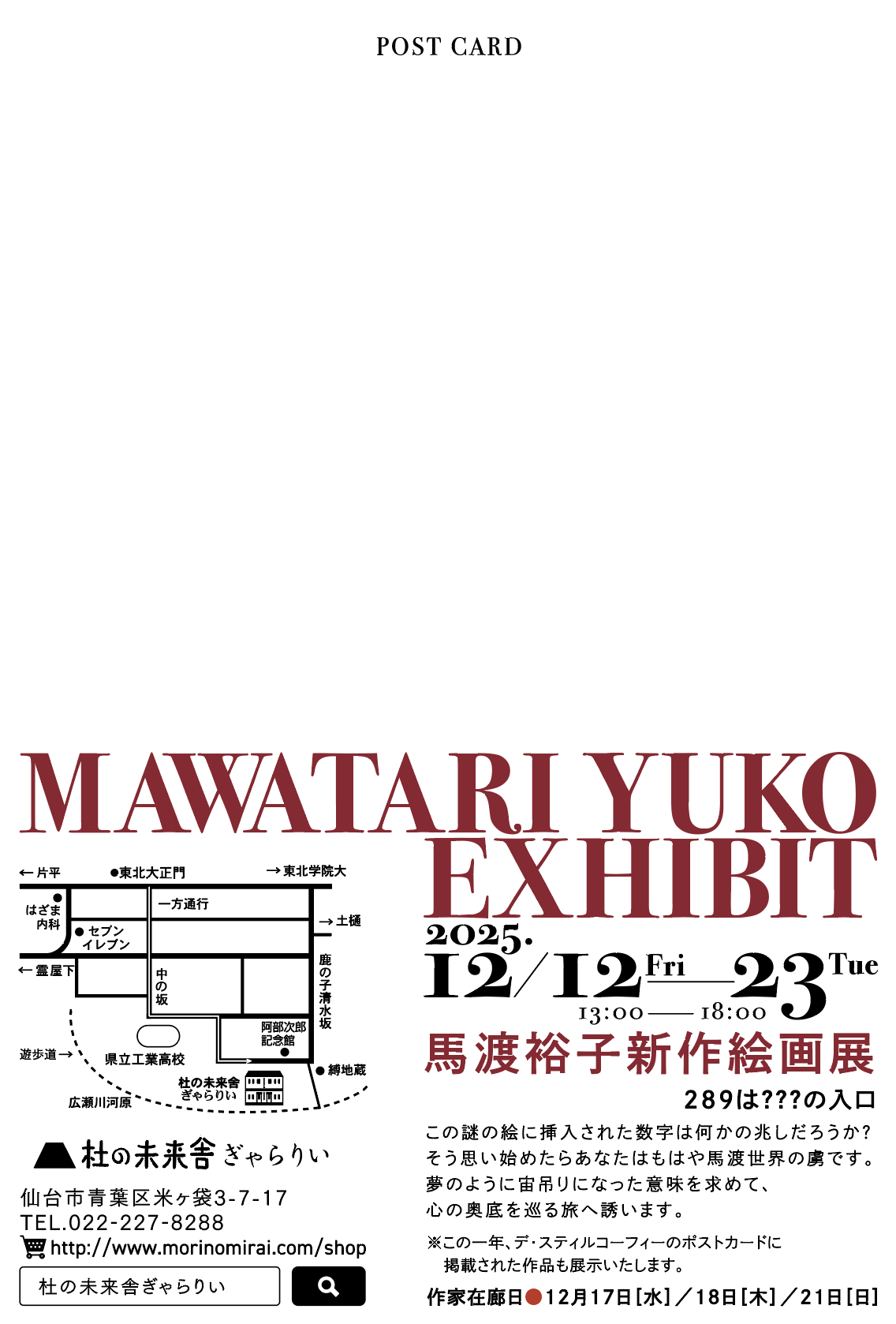 日時:12月12日(金)~23日(火)13:00~18:00